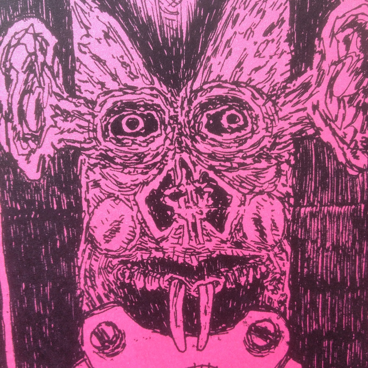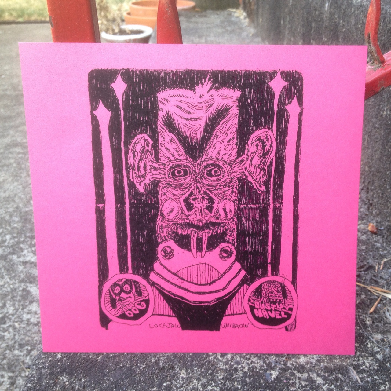 Moleskine 8.5 X 8.25 drawing printed on sparkly red cardstock. Raw Dog and Dusty Navel included!