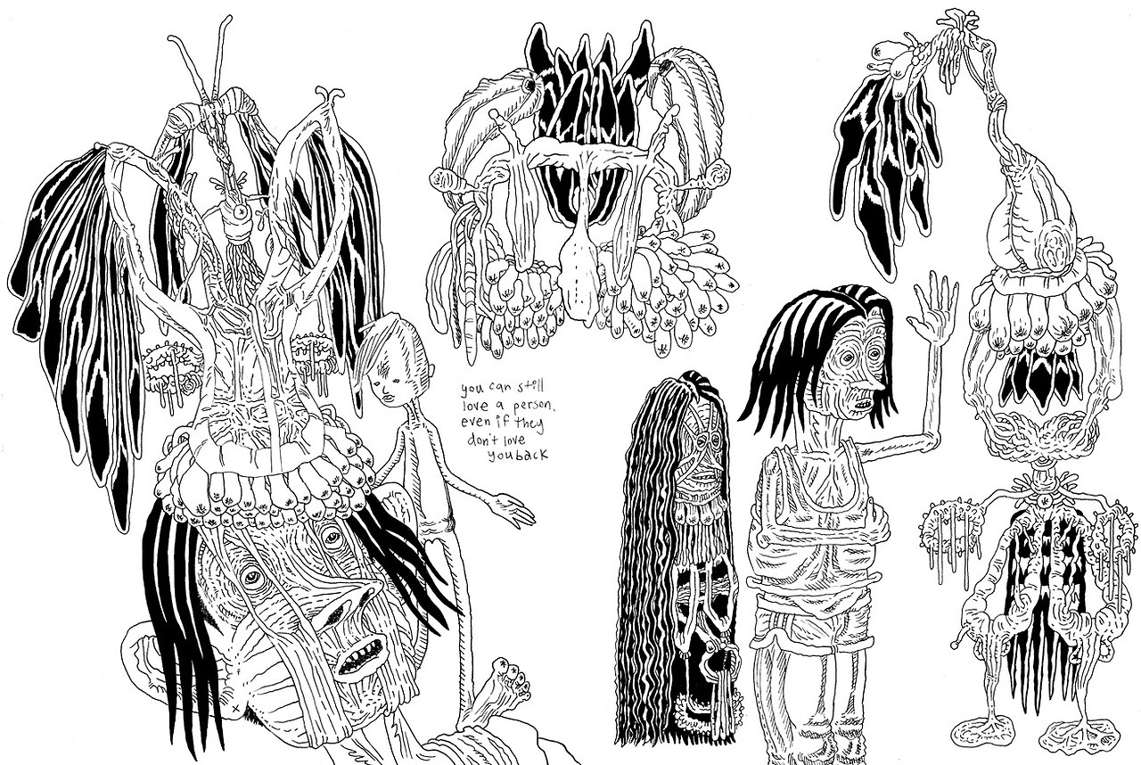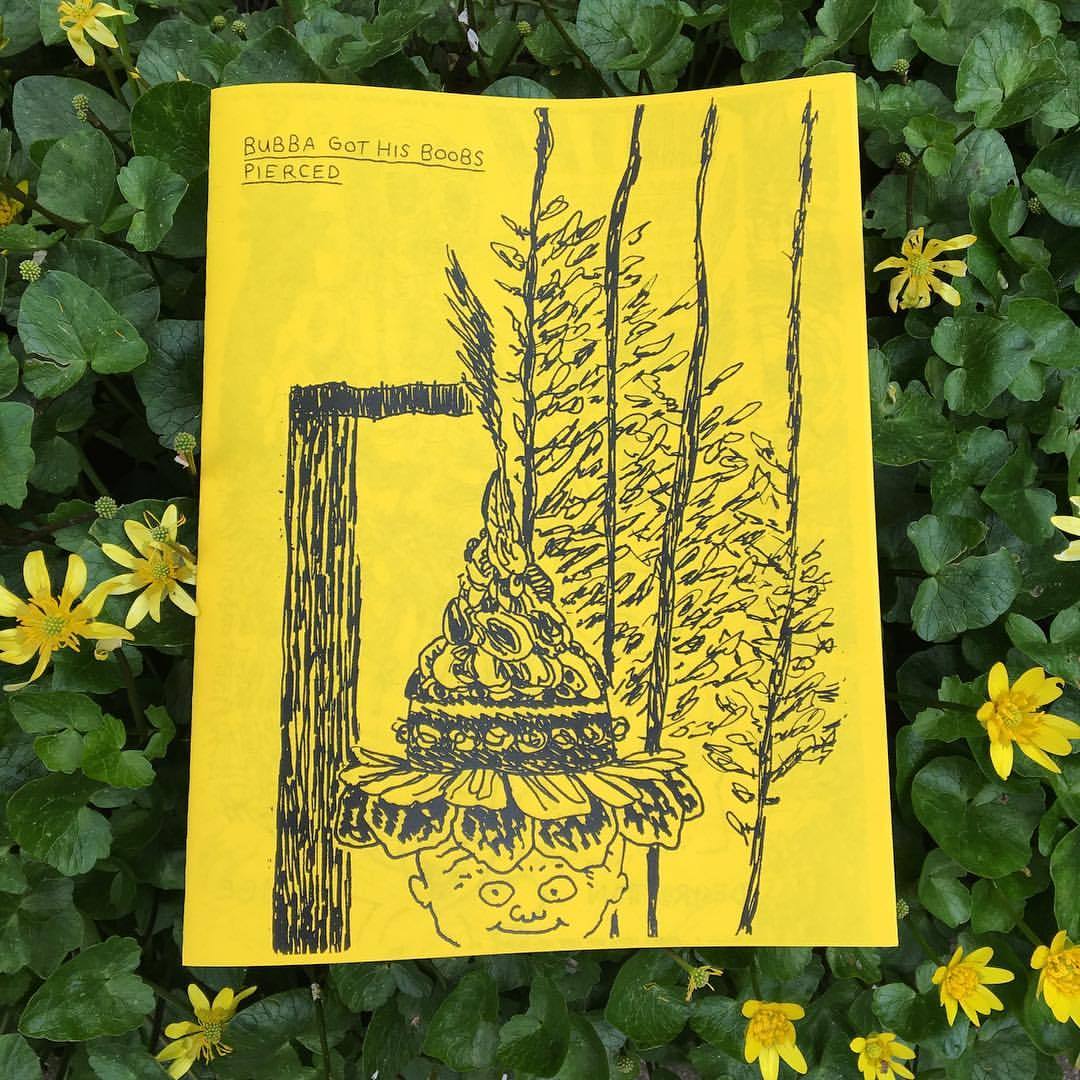 16 pages of sketchbook stuff, Letter size on sunny yellow paper. Join me in my immature fantasy world eternal conscious living hell.