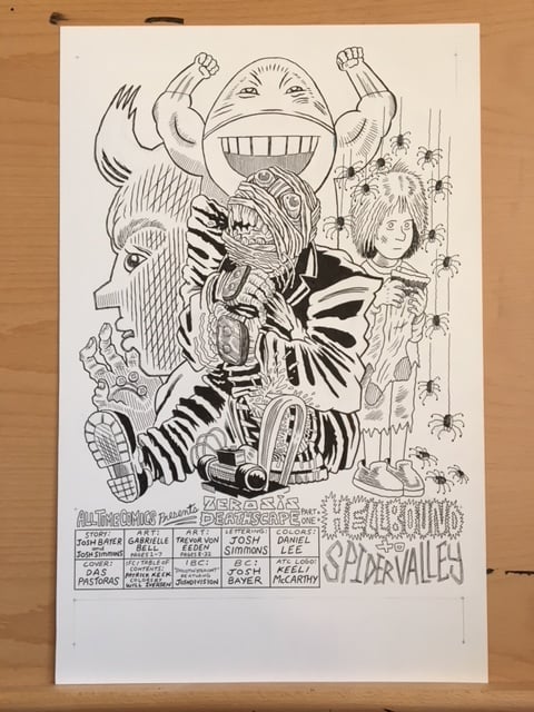Original art featured in ALL TIME COMICS, Season 2, Issue #1. Ink on Bristol, some white-out and blue-line visible, 11X17.