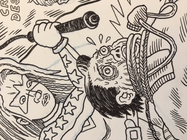 Original art featured in ALL TIME COMICS, Season 2, Issue #4. Ink on Bristol, some white-out and blue-line visible, 11X17.