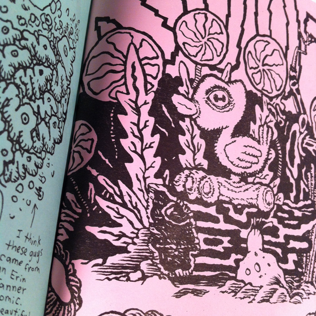 12 page sketchbook Zine. Risograph printed on green and pink paper, winter 2013. "You can walk around in your socks."