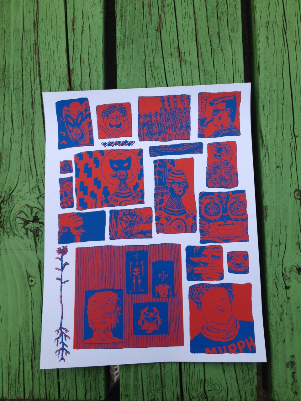 MURPH. 2 color silkscreen print on 8.5 X 11 white card stock, printed by Chris Cilla at Sardine Can Press. Edition of around 25.