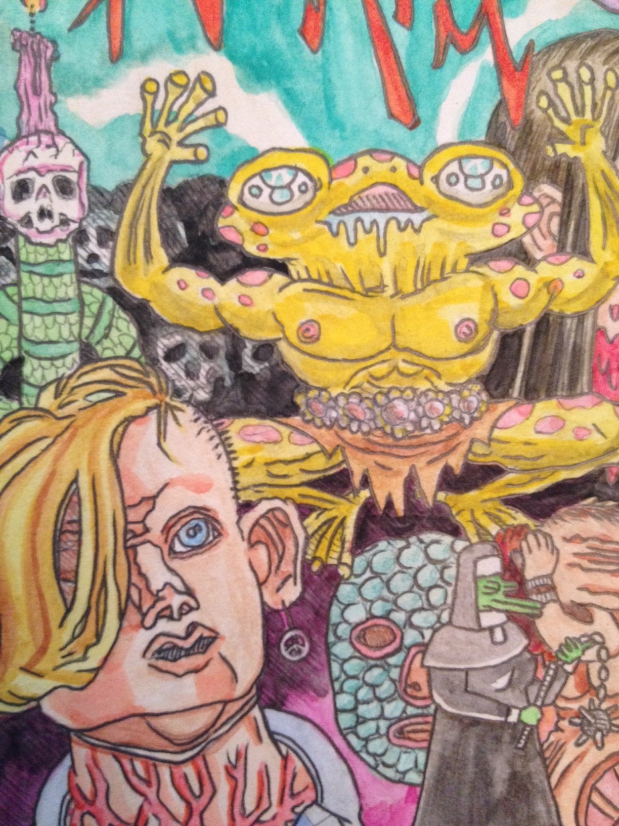 Original pencil and watercolor drawing on Bristol, 11X17. Made for Marc J. Palm's VHS New Wave art show. You could cut it out and fold it to look like a real VHS!