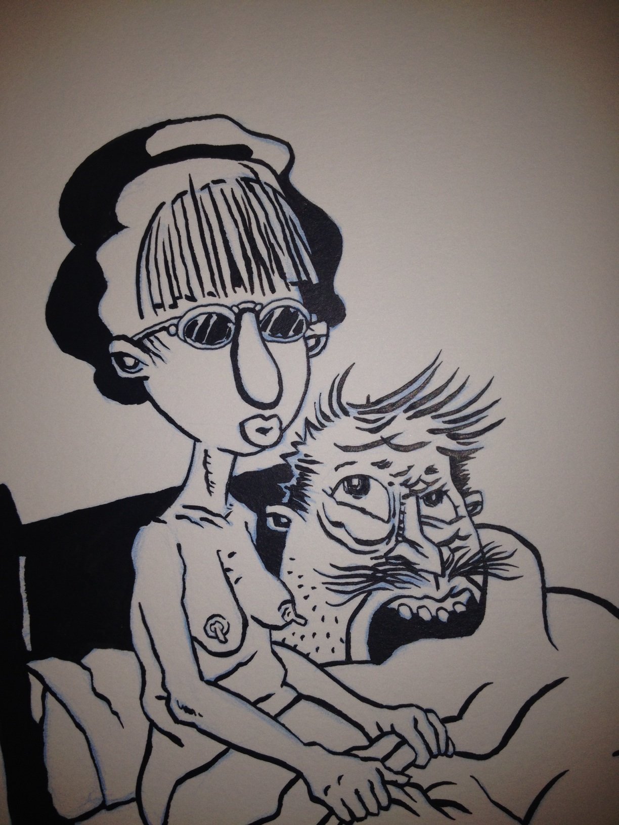 One panel gag comic art, originally appeared in The Rat Nest #1. India Ink on Bristol, Blue-Line pencil visible, 9X12.