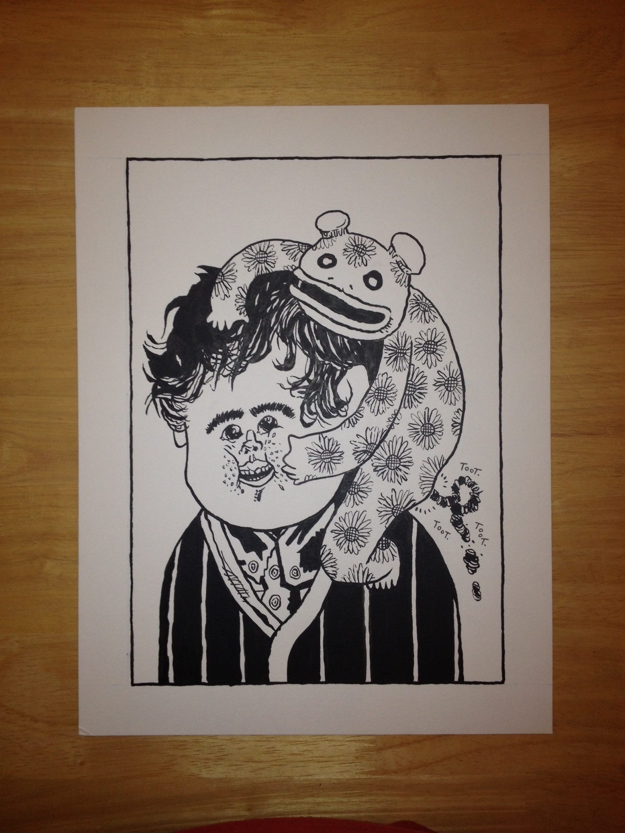 One panel gag comic art, originally appeared in The Rat Nest #1. India Ink on Bristol, 9X12.
